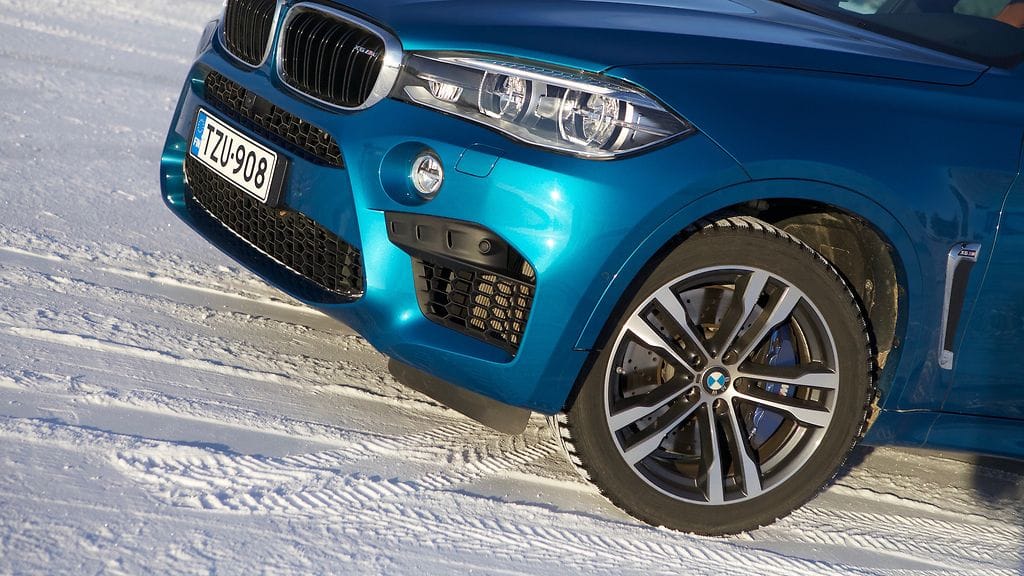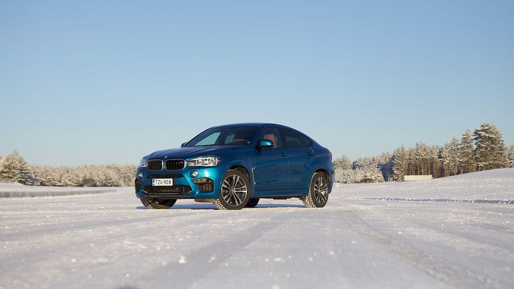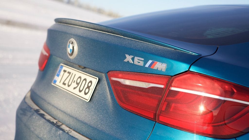BMW X6 on iso ja massiivinen ilmestys. M-mallin isot ilmanottoaukot, pokattu konepelti ja M-mallien tapaan neljä pyöreää pakoputkea kielivät kyseessä olevan menohaluja uhkuva jättiläinen.