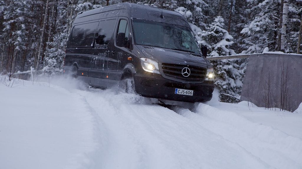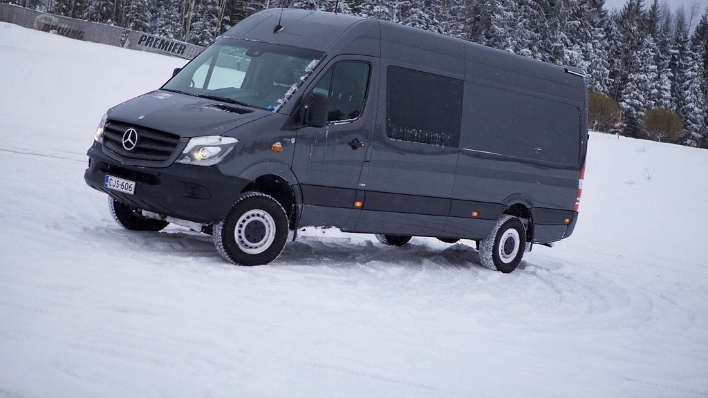 Tutustuimme pikaisesti Mercedeksen pakettiautomalliston kuninkaaseen. Valtavien tilojen lisäksi nelivedolla varustettu auto ei säikähdä huonompaakaan maastoa