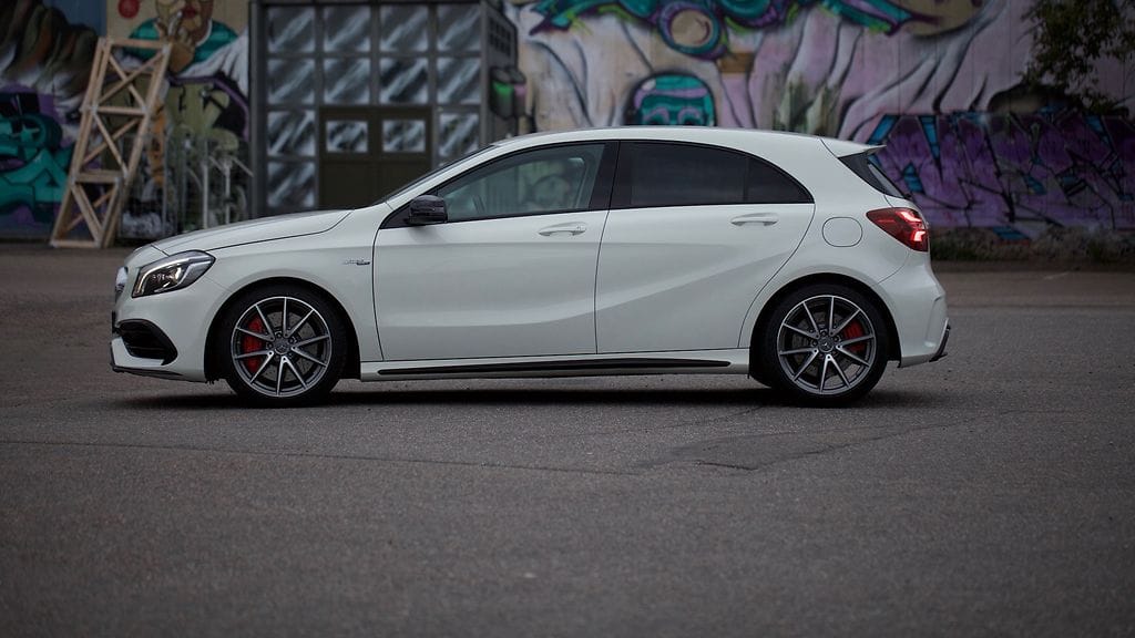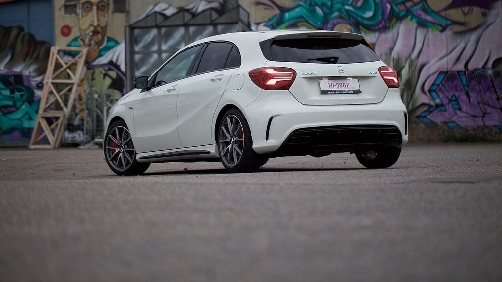 A-sarjalaisen kohdalla AMG-tarina alkoi vuonna 2013. Nelivetoinen ja 360 hevosvoimaa tarjoava kompakti sportti oli jotain täysin uutta sekä Mercedeksen että AMG:n valikoimassa. Malli koki pienen päivityksen 2016, jolloin auto sai tuoretta ilmettä uusien puskurien ja valojen muodossa. Tekniikan osalta A 45 4Matic sai hieman lisätehoa ja etenkin vaihteiston toimintaa parannettiin.