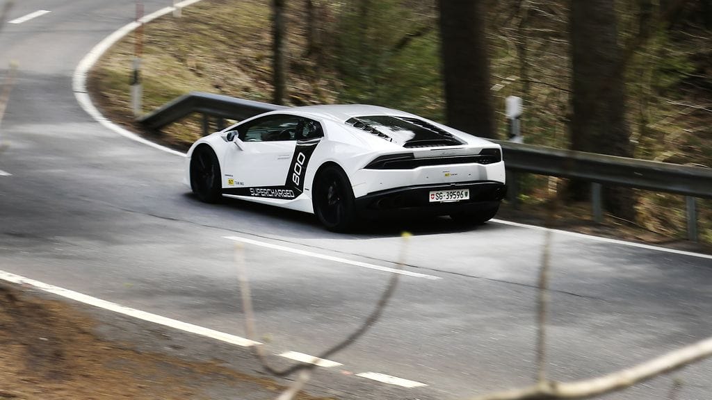 Lambon V10 ärähtää. Renkaat sutaisevat hieman kylmällä asfaltilla, ja sitten selkä painuu kuppi-istuinta vasten kuin joku olisi potkaissut minua rintaan. Tai vatsaan, sillä siellä muljahtaa jokin. Ei olisi pitänyt juoda tuplaespressoa tyhjään vatsaan…