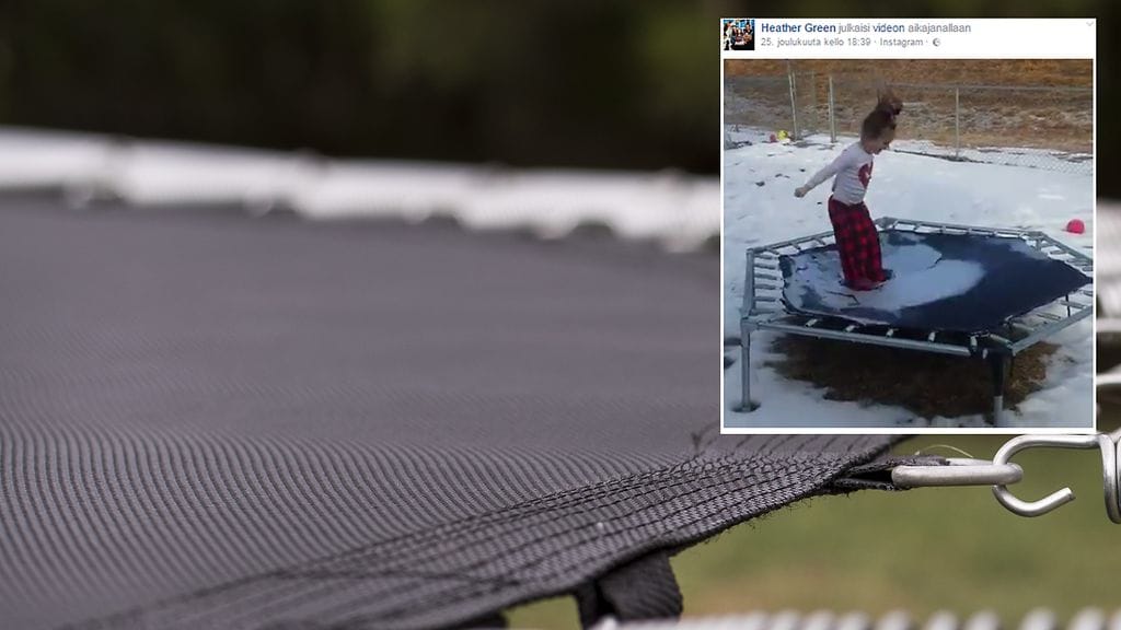 Pikkutyttö valloitti internetin videolla, jossa hän yrittää pomppia joululahjaksi saamallaan trampoliininilla.