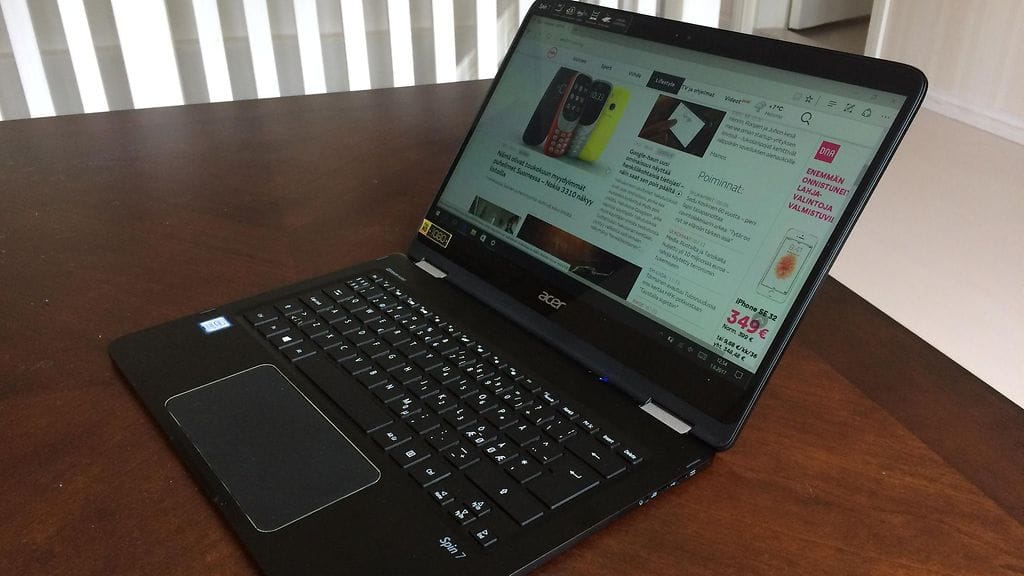 Acer Spin 7 on kevyt hybridikannettava, jota voi käyttää tablettina kääntämällä näppäimistö näytön taakse.