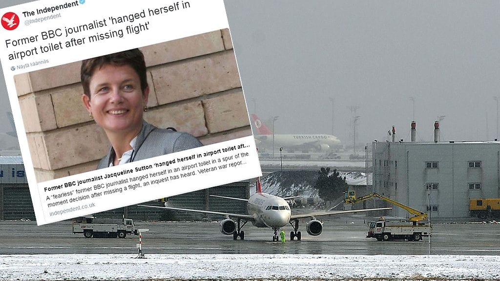 Pelottomaksikin kuvailtu brittitoimittaja hirtti itsensä lentokentän vessassa hetken mielijohteesta myöhästyttyään lennolta, kertoo brittilehti Independent Suttonin siskon kertomaan viitaten.