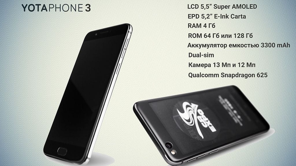 YotaPhone 3 tai Yota3, puhelimesta käytetään Venäjällä ensin ja Kiinassa toiseksi mainittua nimeä, jatkaa edelleen aiemmasta tutulla linjalla. Puhelimesta löytyy etupuolelta tavallinen värinäyttö, mutta takana on puhelimen erikoisuus: e-paperinäyttö, joka kuluttaa virtaa vain sisällön vaihtuessa, joten näyttö voi olla jatkuvastikin päällä. Lisäksi e-paperinäyttö soveltuu luonnollisesti erinomaisesti esimerkiksi e-kirjojen lukemiseen.
