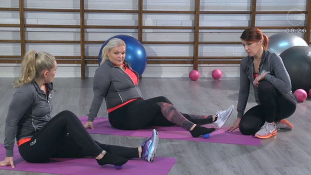 Fysioaamussa esiteltiin kolme liikettä jalkojen lihaskireyden helpottamiseksi.
