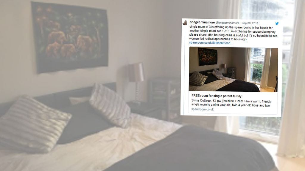 Ilmoituksen tehnyt Frances kertoo ilmoituksessaan olevansa ystävällinen 9-vuotiaan pojan ja 4-vuotiaiden kaksospoikien yksinhuoltajaäiti. Hän tarjoaa SpareRoom-sivustolle tekemässä ilmoituksessa ilmaista ”upeaa, valoisaa ja nykyaikaisesti sisustettua” huonetta suuresta talostaan kalliilla Primrose Hill -asuinalueella Lontoossa.