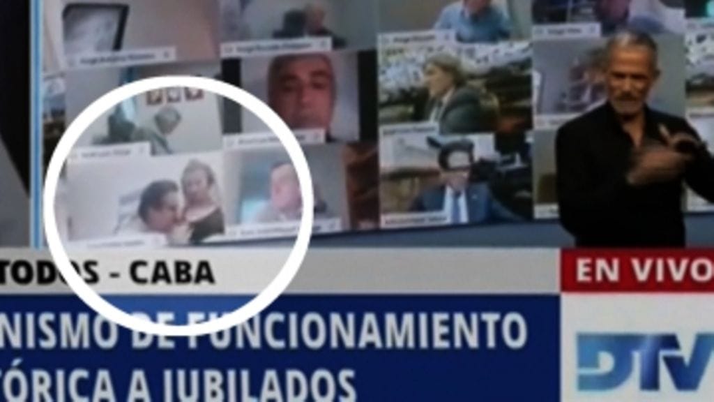 Argentiinan kongressilla oli viime torstaina käynnissä virtuaalinen istunto koronavirusepidemian vuoksi. Kesken lähetyksen valtapuolue Frente de Todosta edustava kongressin jäsen Juan Emilio Ameri nähtiin riisumassa sylissä istuvan vaimonsa paitaa ja suukottelevan hänen rintaansa.