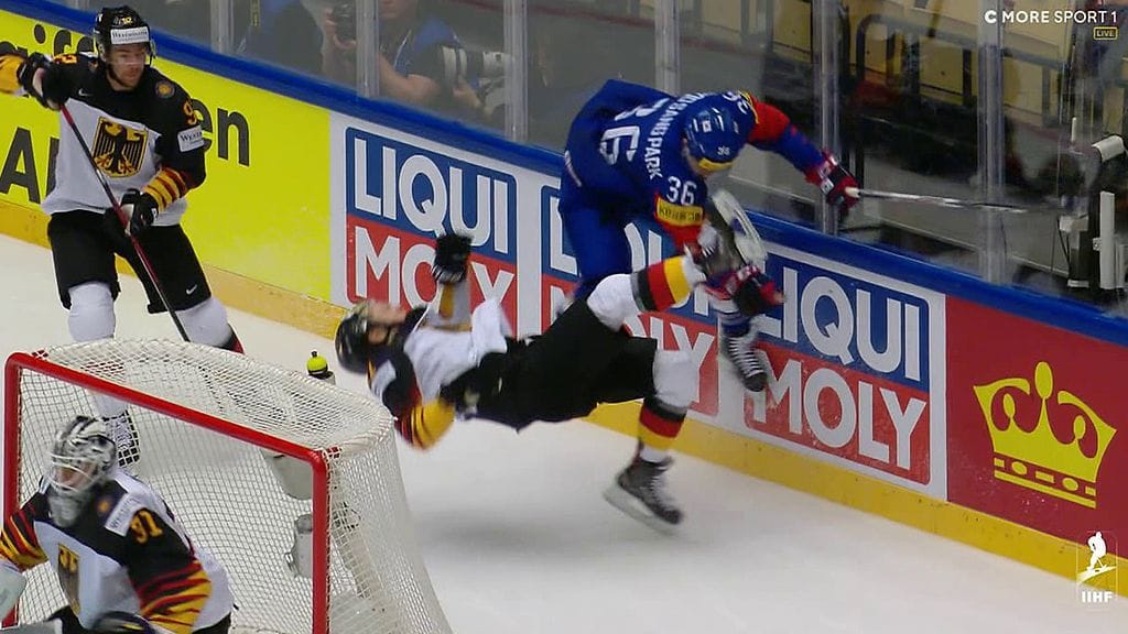 Jääkiekon MM-kisoissa pelaava Etelä-Korea ei ole vielä päässyt voittojen tielle, mutta heidän pelityylistään ei fyysisyyttä puutu. Etelä-Korean Woosang Park näytti Saksaa vastaan kuinka laitetaan mies kanveesiin.