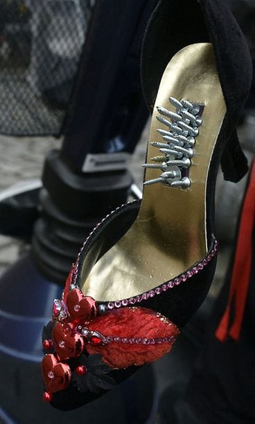 Vammaisjärjestöjen naisverkosto järjesti tänään Helsingissä mielenosoituksen naisiin kohdistuvaa väkivaltaa vastaan. Korkkarimarssi-tapahtumassa naisten asiaa ajettiin yhden naiseuden symbolin, korkokenkien, avulla. Osallistujat sonnustautuivat korkokenkiin kukin tavallaan. Osan kengät olivat päässä, osan selässä tai sylissä.