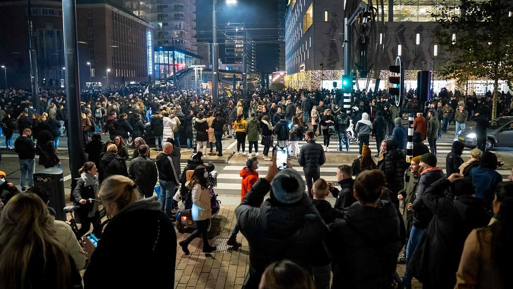 Koronarajoituksia vastustavien protestoijien mielenilmaukset jatkuivat tänään Hollannissa sen jälkeen kun yli 50 ihmistä oli otettu kiinni eilen mellakoiksi muuttuneissa protesteissa Rotterdamissa ja poliisit olivat joutuneet ampumaan laukauksia hillitäkseen väkijoukkoja.