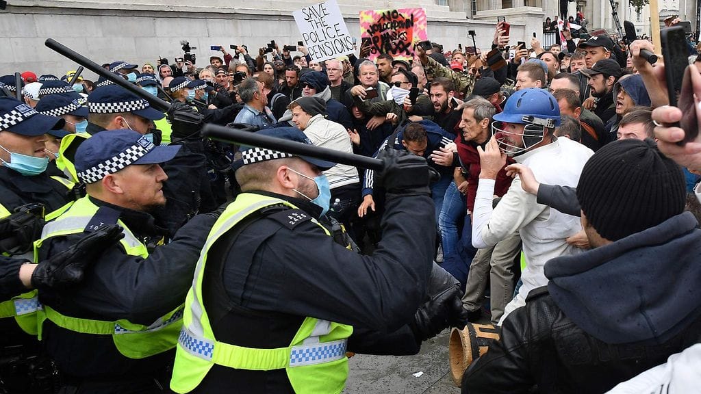 Tunnetun salaliittoteoreetikon koolle kutsuma mielenosoitus yltyi poliisin mukaan paikoin mellakoinniksi. Poliisi otti yhteen protestoijien kanssa ja hajotti mielenosoituksen, koska paikalle tulleet eivät noudattaneet turvavälejä tai käyttäneet maskeja, kertoi BBC.