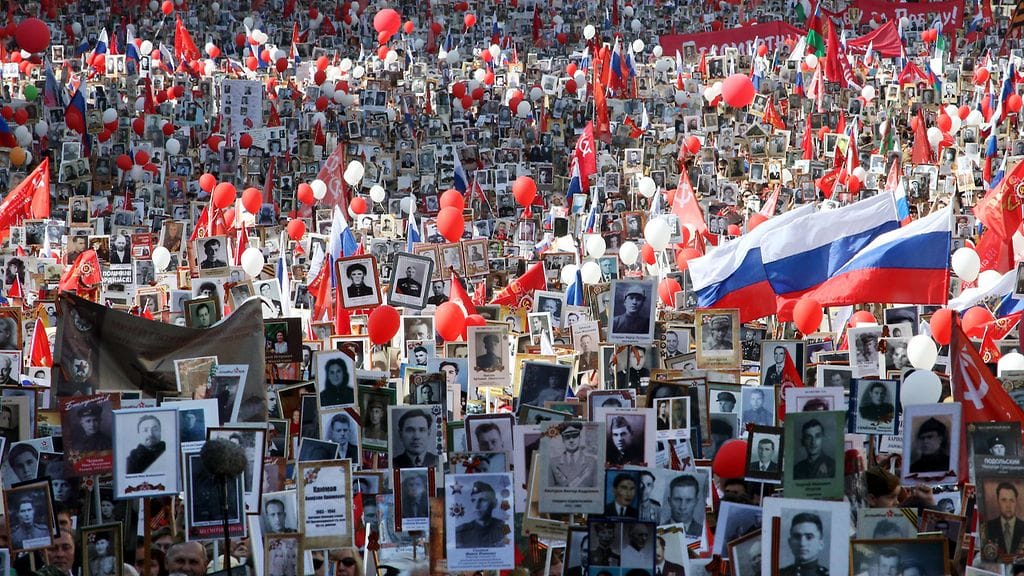 Voitonpäivään liittyy myös suosittu kansalaisparaati, jossa ihmiset kantavat sodassa taistelleiden sukulaistensa kuvia. Tapahtuma on siirretty verkkoon.