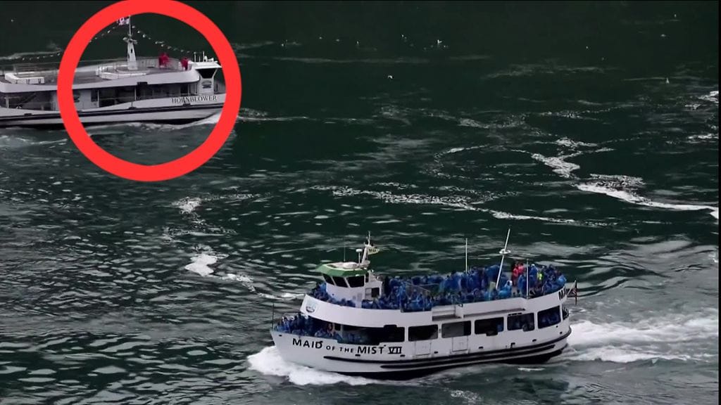 Yläpuolelta löytyvältä mielenkiintoiselta videolta on nähtävissä, kuinka Yhdysvaltain lautta on täynnä sadetakkisia turisteja, kun taas Kanadan lautta ammottaa miltei tyhjyyttään.