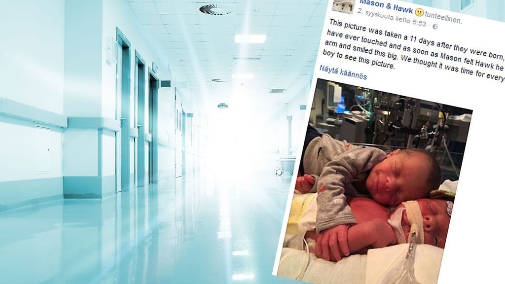 Hengenvaarassa olevan vauvan kaksonen antaa hengityskoneessa olevalle veljelleen tärkeän halauksen.