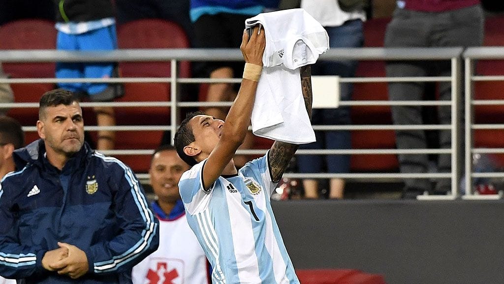Di Maria myös syötti Ever Banegan tekemän Argentiinan 2-0-maalin ja nosti kohti taivasta t-paidan, johon oli painettu teksti "kaipaan sinua".