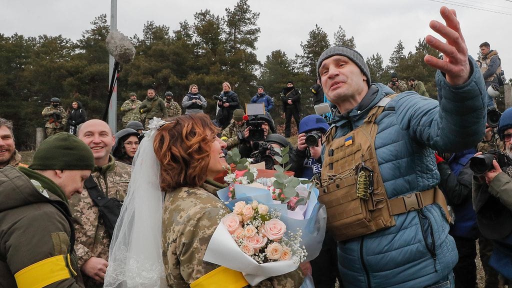 Kiovan pormestarina toimiva nyrkkeilyn entinen raskaansarjan maailmanmestari Vitali Klitshko jakoi sosiaalisessa mediassa videon poikkeusoloissa Kiovassa järjestetystä hääseremoniasta, jota hän itsekin kunnioitti läsnäolollaan.
