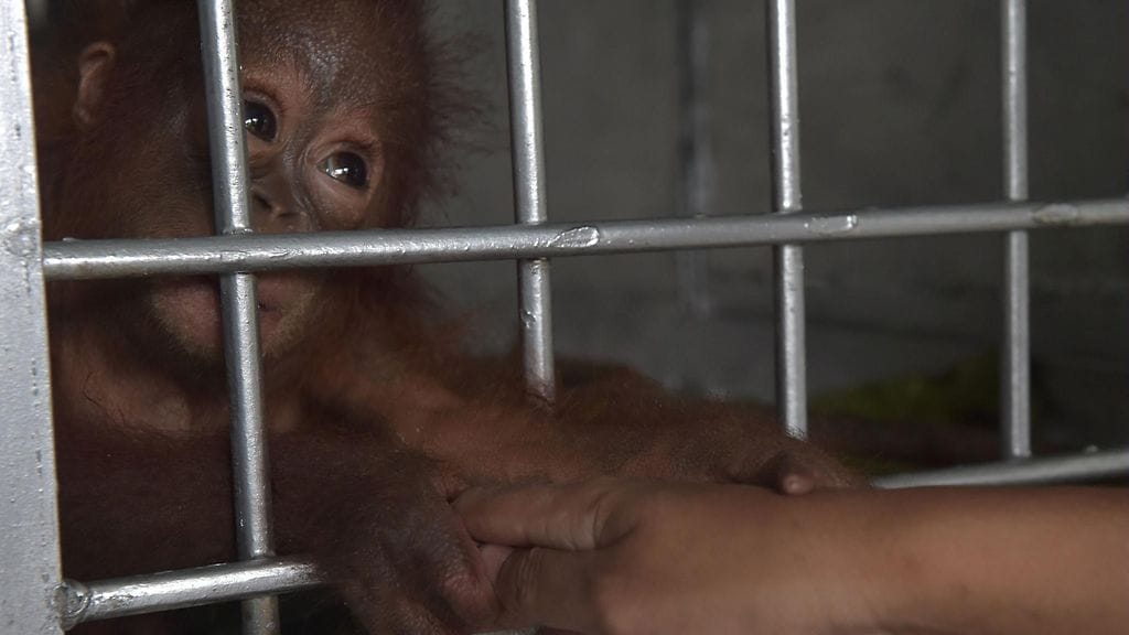 Uhanalaisia apinoita pidetään usein lemmikkeinä Borneon Indonesian-puoleisissa viidakkokylissä, vaikka se on lainvastaista.