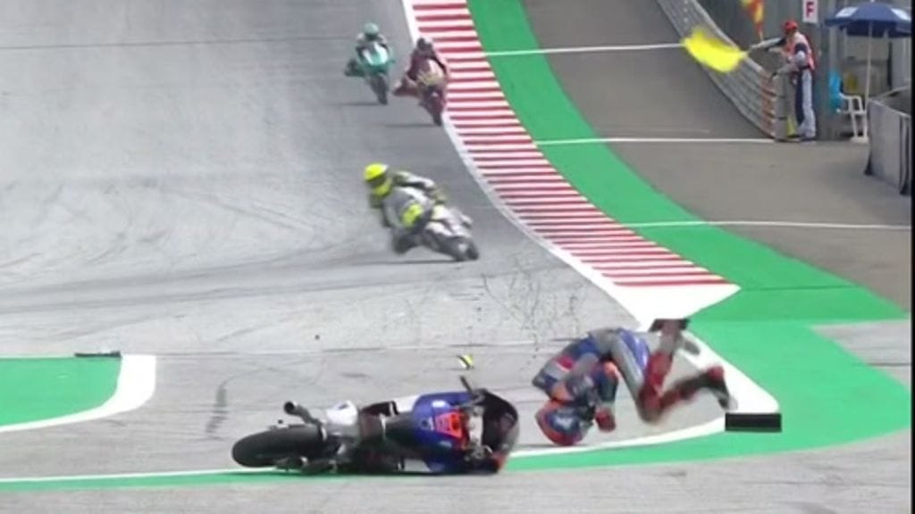 Neljä kierrosta ennen maalia nähtiin raju kolari, kun KTM Tech 3 -tallin kuljettajat Deniz Öncü ja Ayumu Sasaki osuivat yhteen pääsuoran lopussa. Sasaki selvisi kaatumisesta ehjin nahoin, mutta turkkilaiskuljettaja Öncü jouduttiin siirtämään pois radalta paareilla.