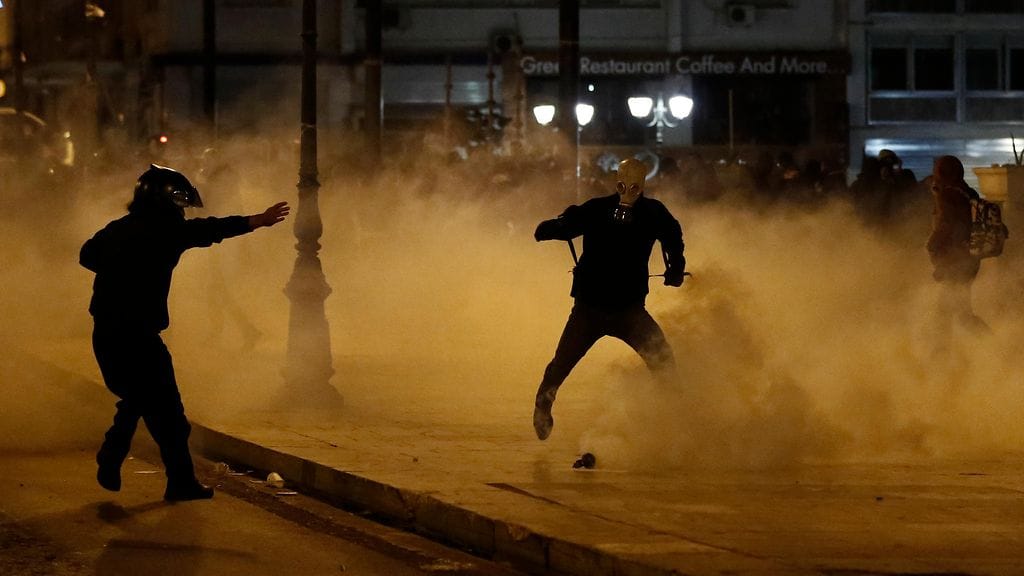 Kreikassa poliisi on käyttänyt kyynelkaasua hajottaakseen säästötoimia vastustavan mielenosoituksen. Se muuttui väkivaltaiseksi, kun hupuilla kasvonsa peittäneet nuoret alkoivat heitellä polttopulloja.
