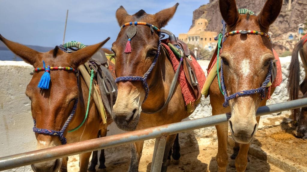 Santorini on tunnettu mäkisestä maastostaan, ja aaseja on perinteisesti hyödynnetty kuljettamaan ihmisiä paikoissa, joihin kulkuneuvot eivät taivu.