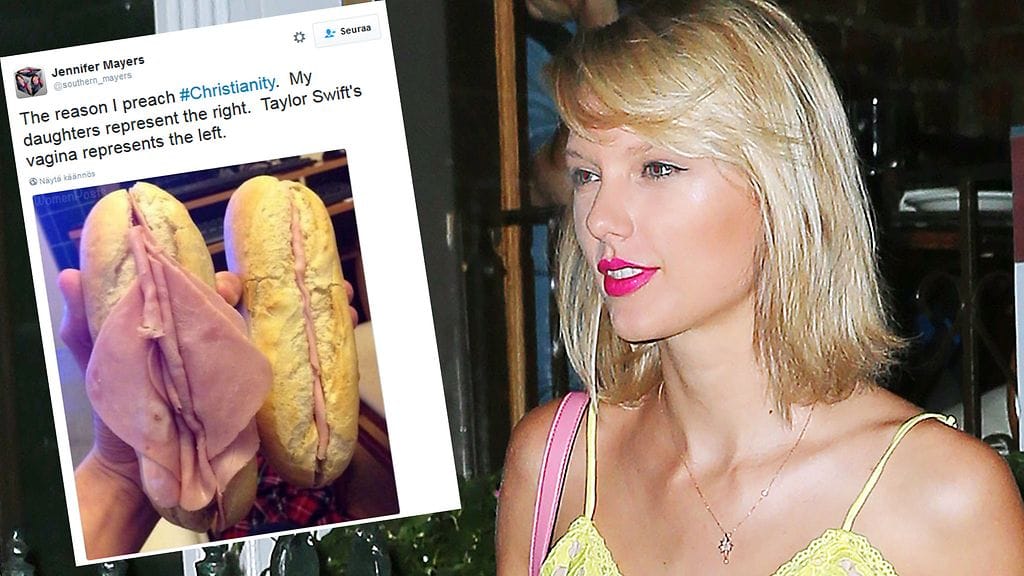 Kuvan yhteyteen tuohtunut äiti kirjoitti: "Syy, miksi saarnaan kristillisyydestä. Tyttäreni edustaa oikeammanpuoleista. Taylor Swiftin vaginaa edustaa tuo vasemmanpuoleinen."
