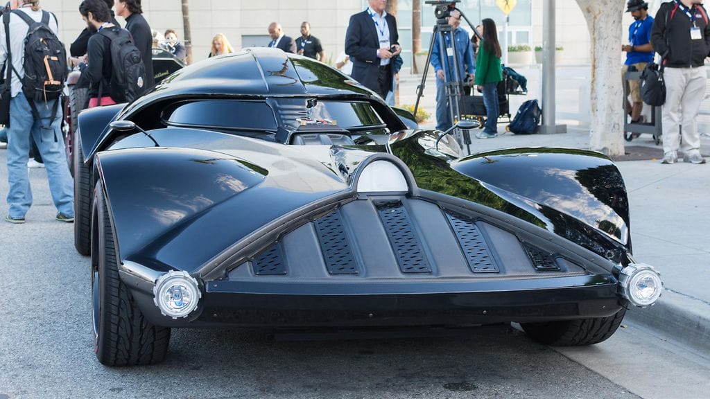 Yhdysvaltalainen koomikko-juontaja Jay Leno hyppäsi Darth Vader -auton rattiin.