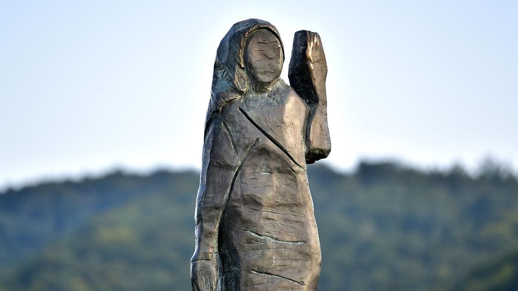 Pronssinen patsas seisoo Slovenian Sevnecassa, jossa Melania Trump varttui lapsena.