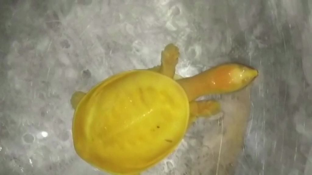 Balasoressa, Intiassa, on löydetty erittäin harvinainen kilpikonna, jonka ruumis ja kilpi ovat täysin keltaiset, kertoo uutistoimisto Reuters.