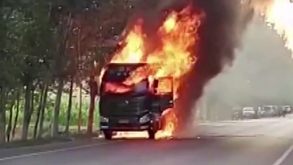 Sankarimainen rekkakuski pelasti mahdollisesti useita ihmisiä ajettuaan tuleen syttyneen rekkansa kauas ihmisasutuksesta Kiinassa, Jilin provinssissa.