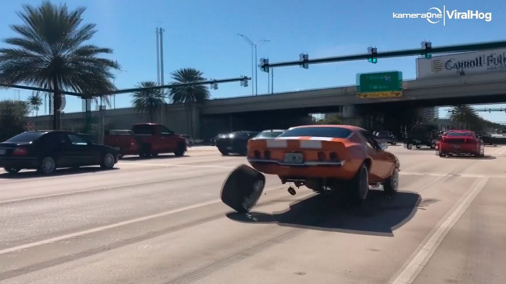 Floridan West Palm Beachilla kuvatulla videolla 1970-luvun Chevrolet Camaro pääsee kokonaan eroon vasemmasta takapyörästään.
