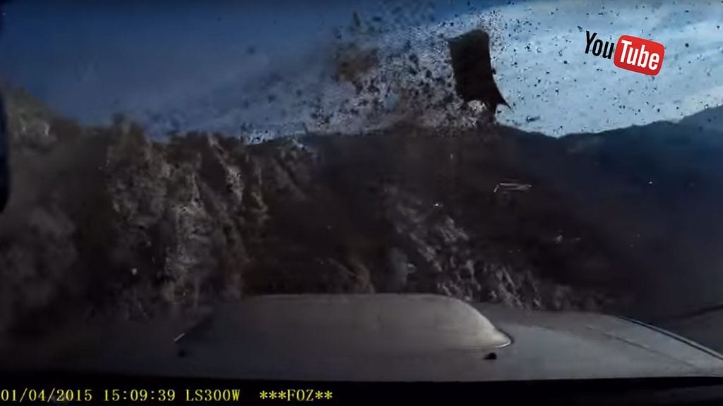Eräs losangelesilainen autoilija sai kokea tämän kovimman kautta ajaessaan vuoristotieltä ulos Subarullaan. Hän jäi henkiin ja on nyt jakanut kojelautakameran tallentaman videon vuosi sitten tapahtuneesta onnettomuudesta.