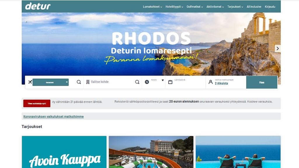 Matkatoimisto Deturin on maksettava asiakkailleen rahanpalautukset koronan vuoksi perutuista matkoista viimeistään heinäkuussa, kertoo Kilpailu- ja kuluttajavirasto.