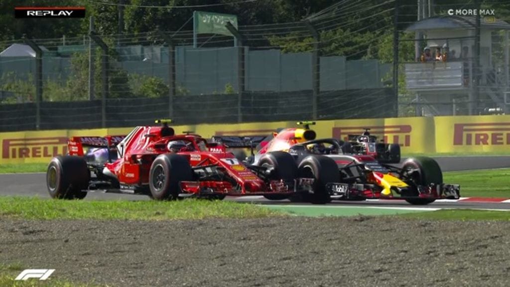 Verstappen ajautui kisan avauskierroksella shikaanissa ulos radalta ja palasi likaiselta pinnalta takaisin tielle suoraan Räikkösen eteen. Tilanteessa Ferrarin suomalaiskuskin auto kärsi vaurioita.