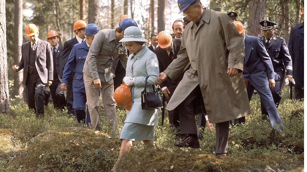Varsinkin ensimmäinen vierailu on varmasti jäänyt lähtemättömästi monarkin mieleen - joutuihan hän joutui korkokengissään rämpimään metsätyömaalla ja lounastamaan metsän siimeksessä.