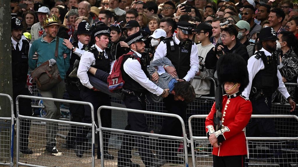 Kuningatar Elisabetin Platinum Jubilee -juhlaviikonloppu käynnistyi hämmästyttävän välikohtauksen saattelemana, kun Trooping the Color -paraati kohtasi mielenosoittajia.