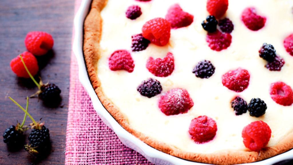 Laita kesämarjat tuoreeltaan marjapiirakkaan.Jos käytät pakastemarjoja, lisää ne jäisinä piirakkaan. Valkosuklaarahkan tilalla voi käyttää 1 tlk rahkaa ja n. 50 g sulatettua valkosuklaata.