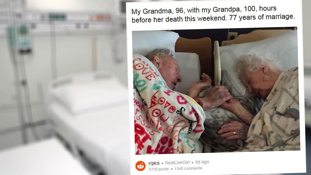 Lapsenlapsi julkaisi herkän kuvan isovanhemmistaan pitelemässä toisiaan kädestä vain tunteja ennen isoäitinsä kuolemaa.