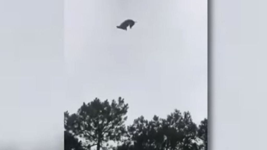 Tilanne on tallentunut videolla ja siitä näkee, kuinka eläin putoaa suoraan keskelle uima-allasta.