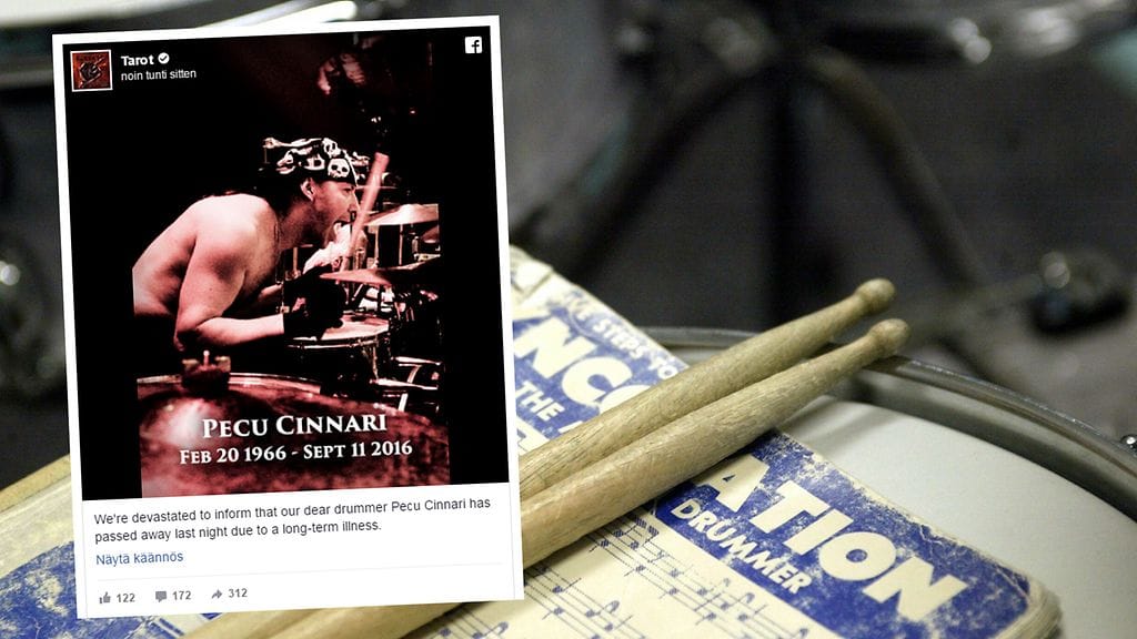 Jo yli 30 vuotta yhdessä soittaneen Tarot-yhtyeen rumpali Pecu Cinnari on menehtynyt. Cinnari oli kuollessaan 50-vuotias.