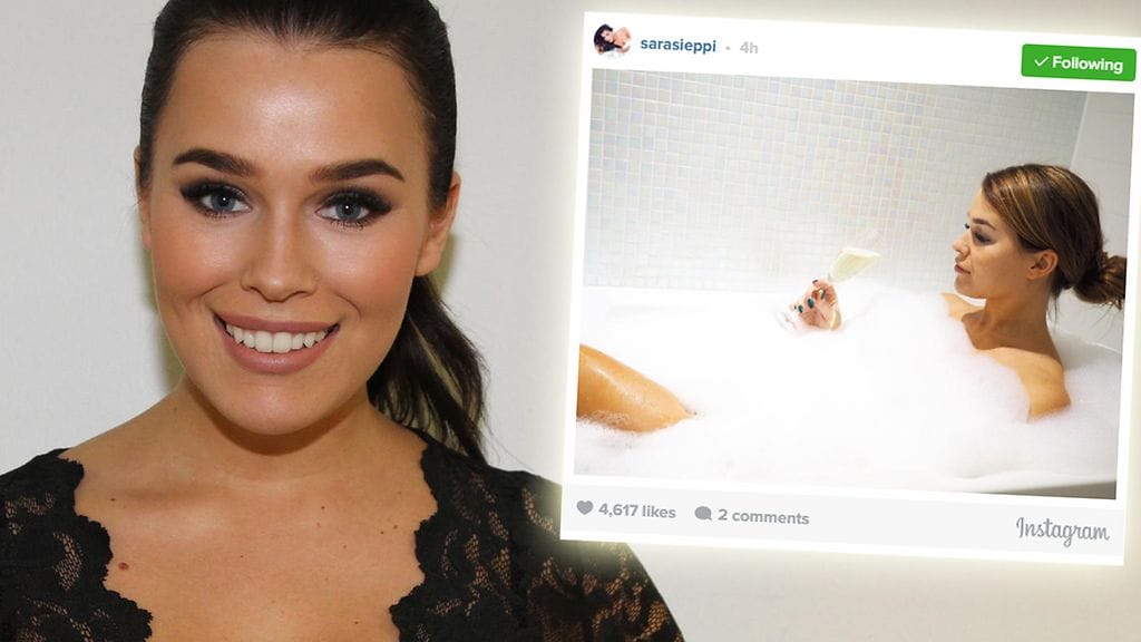 Sara Sieppi, 25, julkaisi Instagramissa kuvan, jossa hän on vaahtokylvyssä ja on juuri siemaisemassa samppanjalasista samppanjaa.