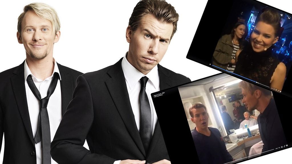 Jarno Laasala ja Aku Hirviniemi esittelivät suorassa lähetyksessä Helsingissä MTV:n Filmihallilla kuvattavan sarjan kulisseja.