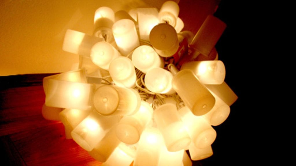 Avaran huoneen nurkassa ovat isot vanhat rappuset, jotka lähemmällä tutkinnalla paljastuvat lampuiksi. Rappusilta kurkistaa Minni Hiiri.