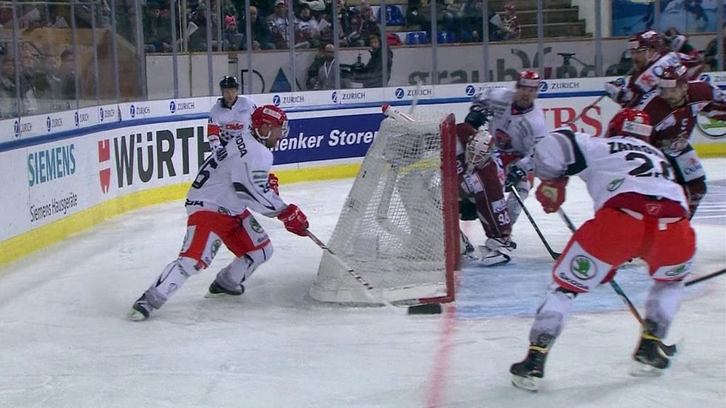Bednar hyppäsi avauserässä Riian siirretyn rangaistuksen aikana kuudentena miehenä kaukaloon ja ujutti kiekon vanhanaikaisella häkkiin (video jutun ylälaidassa). Mountfield siirtyi ottelun kuudennella minuutilla syntyneellä osumalla 1–0-johtoon.