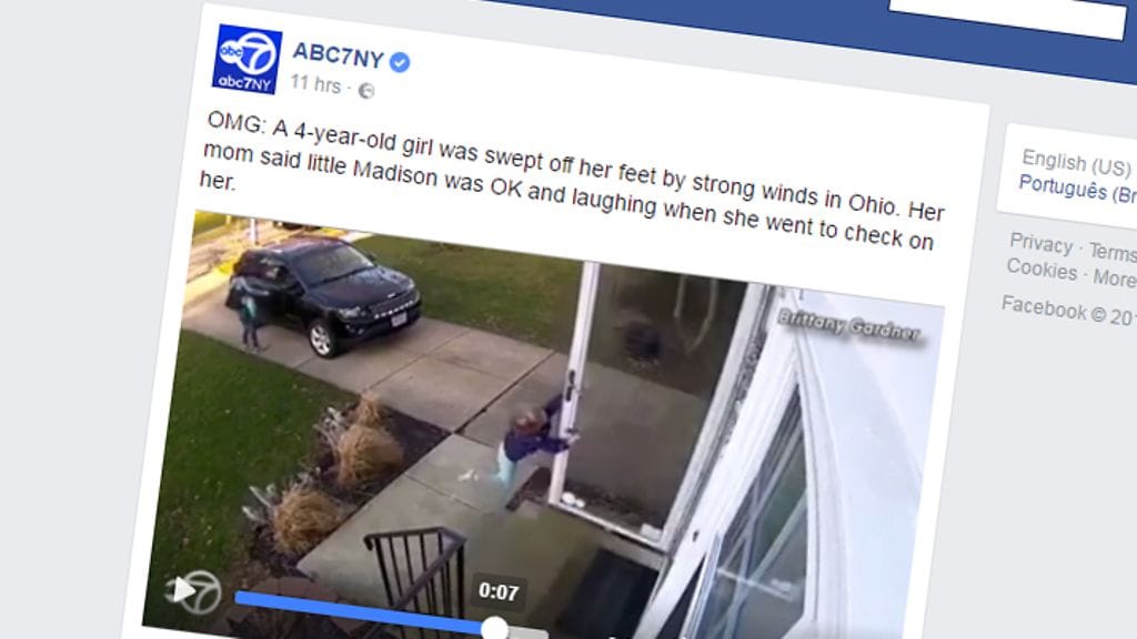 ABC7NY-kanavan jakamalla videolla Madison-niminen tyttö menee avaamaan kotinsa ovea, kun tuuli nappaa sekä oven että tytön mukaansa.