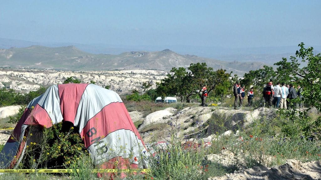 Onnettomuus sattui erikoisista kalliomuodostelmistaan tunnetulla Kappadokian alueella maan keskiosassa, kun kaksi kuumailmapalloa törmäsi toisiinsa.