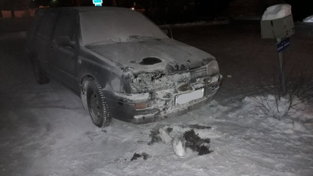 Pelastuslaitos kävi varmistamassa auton sammuneeksi.