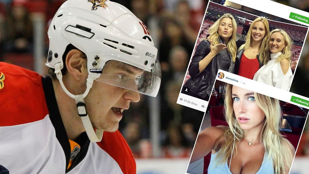 Kuvasta käy ilmi, että kolmikko oli seuraamassa Aleksander Barkovin joukkueen Florida Panthersin peliä. Doroshina poseeraa kuvassa keskimmäisenä.