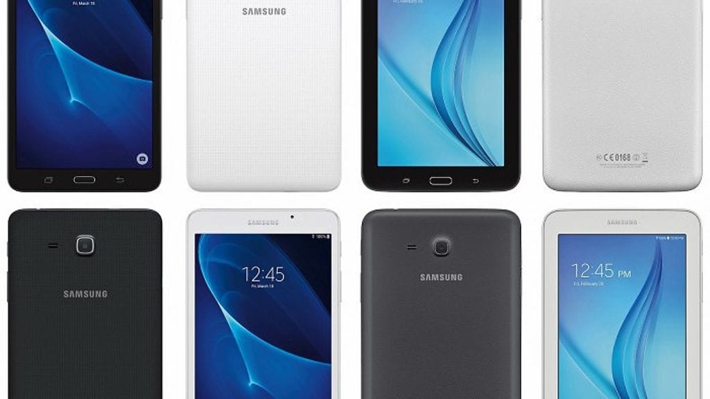 (Kuva: Evan Blassin jakamassa kuvassa vasemmalla on 2x Galaxy Tab A (2016) ja oikealla 2 x Galaxy Tab E 7.0.)
