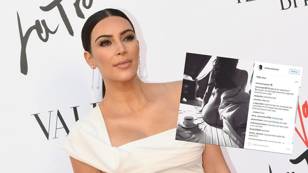 Tällä kertaa nainen päätti paljastaa 72 miljoonalle seuraajalleen koko paljaan peppunsa. Kim istuu kuvassa sängyllä selin kameraan päin kahvikupponen vierellään. Hän on löytänyt päälleen rintaliivit, mutta pikkuhousuja naisella ei ole.
