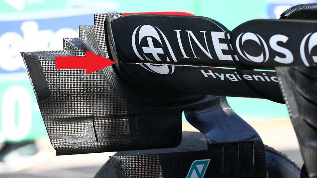 F1-sivustot Motorsport.com ja RacingNews365 julkaisivat perjantaina saman kuvan pienestä vekistä kohdassa, jossa takasiiven alempi levy kiinnittyy päätylevyyn.